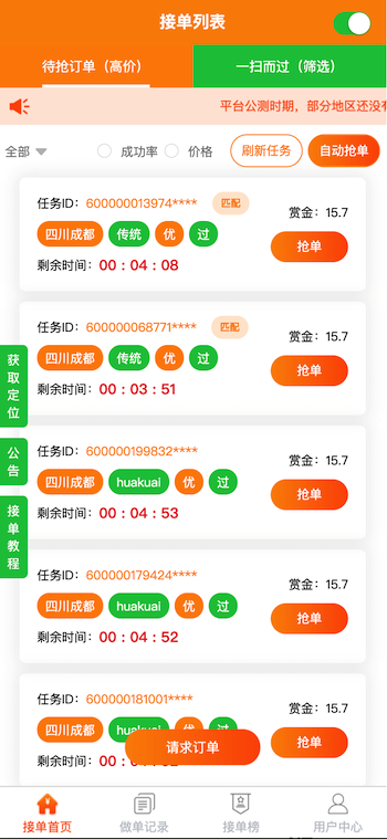 類(lèi)似“碼幫平臺(tái)/FZ輔助/碼力平臺(tái)/閃電接單/蜻蜓輔助/雛菊輔助”,第三方微信輔助注冊(cè)任務(wù)管理平臺(tái)——“蜜蜂”任務(wù)平臺(tái)管理系統(tǒng),幫助有大量微信注冊(cè)需求的商家和想要0元投入月入過(guò)萬(wàn)的兼職人員搭建連通的橋梁。系統(tǒng)由用戶(hù)端H5/APP、商家端H5/APP、地推商戶(hù)端H5、商家端PC、平臺(tái)端PC架構(gòu)而成,支持用戶(hù)隨時(shí)提現(xiàn),支付寶實(shí)時(shí)到賬,商家端一鍵掃碼下單,方便快捷;系統(tǒng)支撐商家每天10萬(wàn)+的訂單下發(fā)和用戶(hù)隨時(shí)隨地?fù)寙危鰡危嵢蚪穑岈F(xiàn)等更多功能。。。